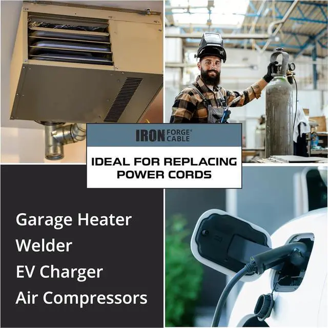 Power Up Heavy-Duty Equipment: Iron Forge Cable's NEMA 6-30P Extension Cord delivers reliable 30 Amp power to your air compressor, garage heater, welder, heat pump, HVAC, dryer or industrial machinery.