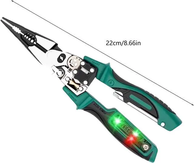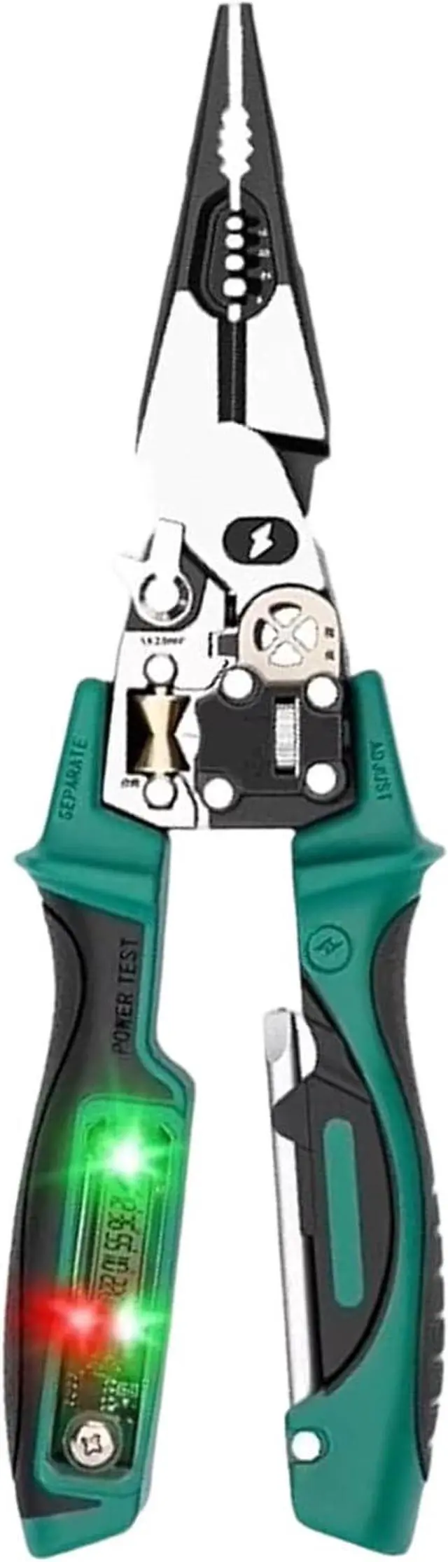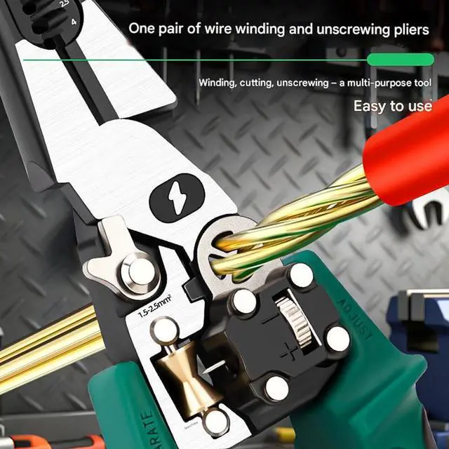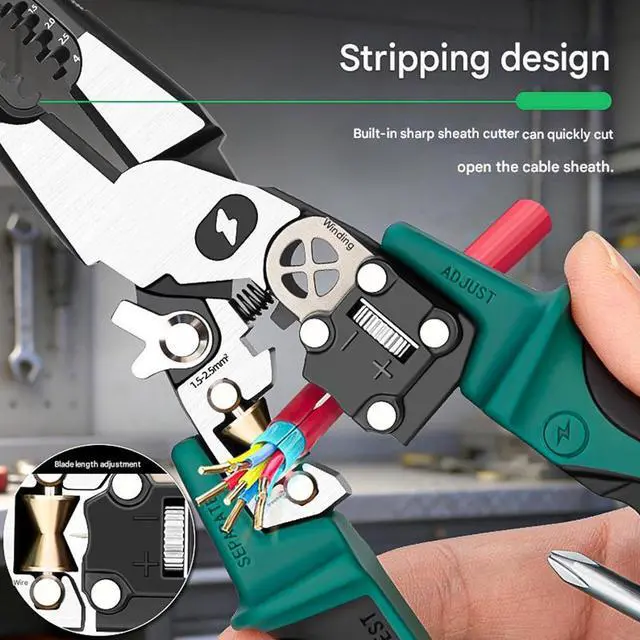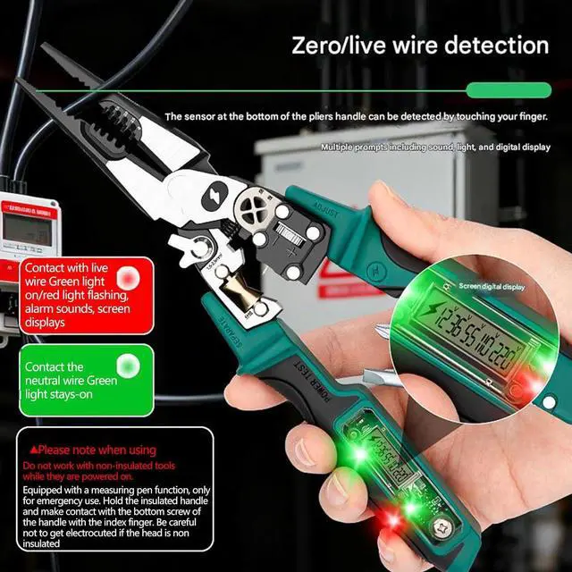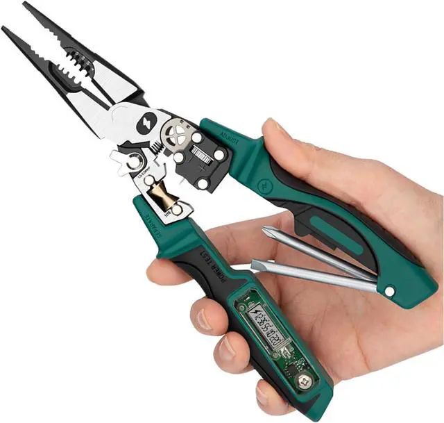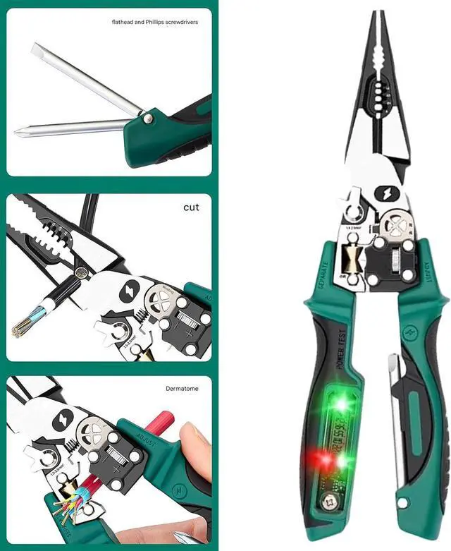 The wire stripper integrates four cores functions of measuring electricity, cutting wire, pulling wire and peeling It can easily handle whether it is to detect the on-off of wire or to handle wire with various specifications Can meet the requirements of electrician ' s multi scene operational and greatly improve work efficiency