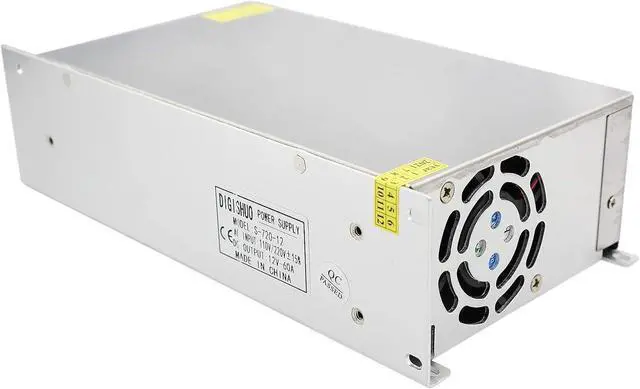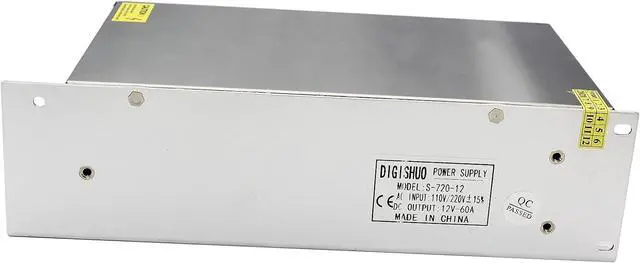 [12V 60A Power Supply] Input: AC 110V/220V 50/60Hz Output:DC 12V Max 60A 720W. Two output ports. Each port outputs 0~60A automatically to match your device, 60A max in total for 2 ports. The default output voltage is 12V, but it can be regulated by 5%, from 11.9V to 12.1V