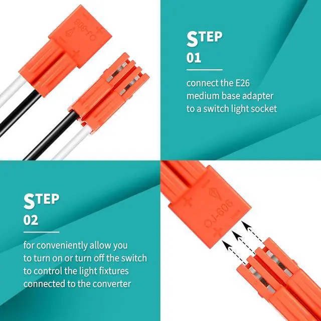 Nice Performance: you can connect the E26 medium base adapter to a switch light socket, to conveniently allow you to turn on or turn off the switch to control the light fixtures connected to the converter
