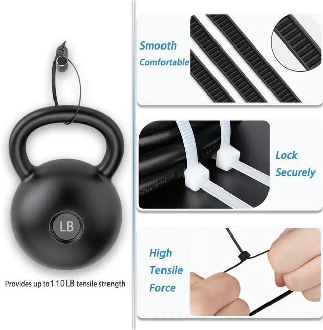 Multiple Purpose Zip TiesThese assorted cable ties are an excellent tool for home, office, garden, garage, travel and workshop organization. You can use it to manage cables, wires, and cords to keep them organized. It can also be used to fixing plants, bundling light strips, hanging curtains, etc.