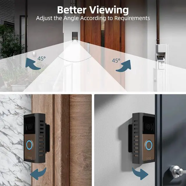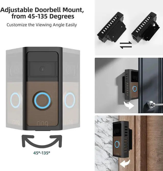 Adjustable Doorbell Mount Customize your doorbells view from 45° to 135° to eliminate blind spots. The Ring door bell angle mount is ideal for your home, department or office, ensuring comprehensive coverage of your property