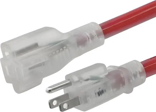 Lighted LED Safety Indicator Injection-molded plugs with built-in LED power indicator light let you know at a glance when the cord is live. Straight 3-prong grounded plug and socket for maximum safety and visibility.
