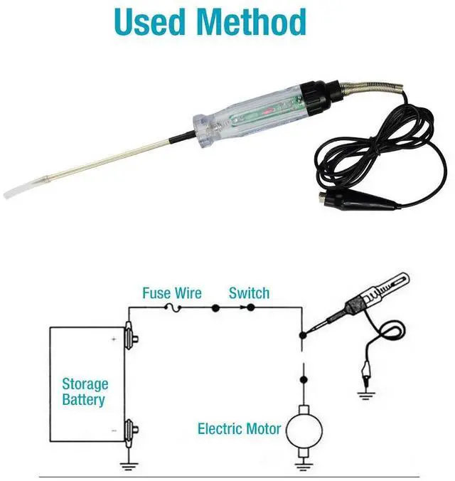 Quickly Test Circuit & Pierce Wire: Voltage Test Light,select a sutibale probe according to test need and attach it to the handle. Attach the testers alligator clip to a good ground(such as the vehicles frame or the point where the vehicles negative battery cable ends