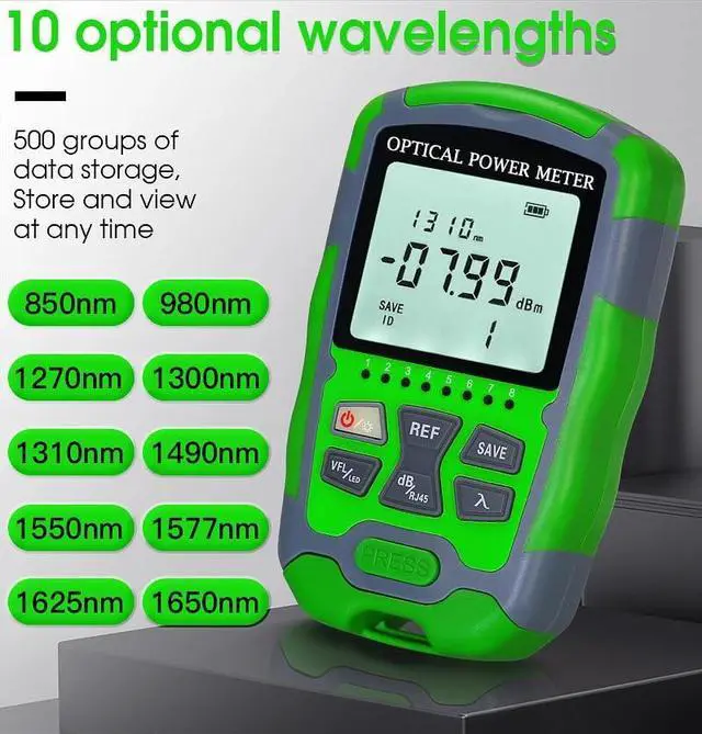 The multifunction fiber optic tester can measure 10 standdard wavelengths with 850/980/1270/1300/1310/1490/1550/1577/1625/1650nm,longer test range: -70dBm~+10dBm,up to 10mW Fiber Opitc Vision Fault Locator features.