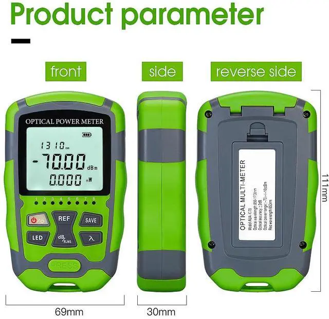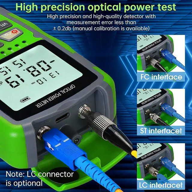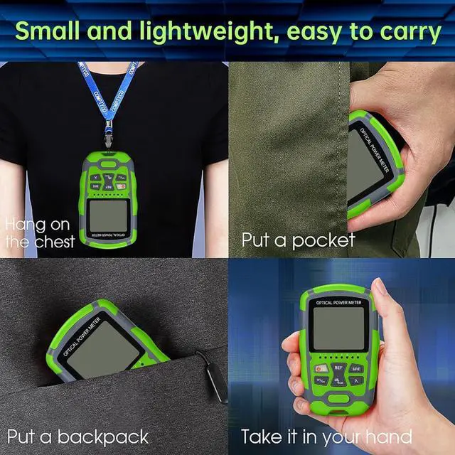 Powerful 4 in 1 function includes network test,optical power test,lighting and VFL. Using a lithium-ion battery (installed inside OPM) for power supply.