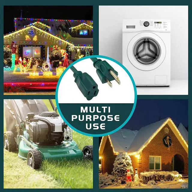 WIDE APPLICATION SCENARIOS: This SJTW extension cord has passed UL certification and performs well in outdoor environments, meeting the needs of high-power electrical equipment in various complex weather conditions, such as lawn mowers, chainsaws, high-pressure water guns, Christmas lights, and other outdoor power tools used in gardens and garages. It is also very suitable for indoor household appliances such as microwave ovens, electric heaters, and computers.