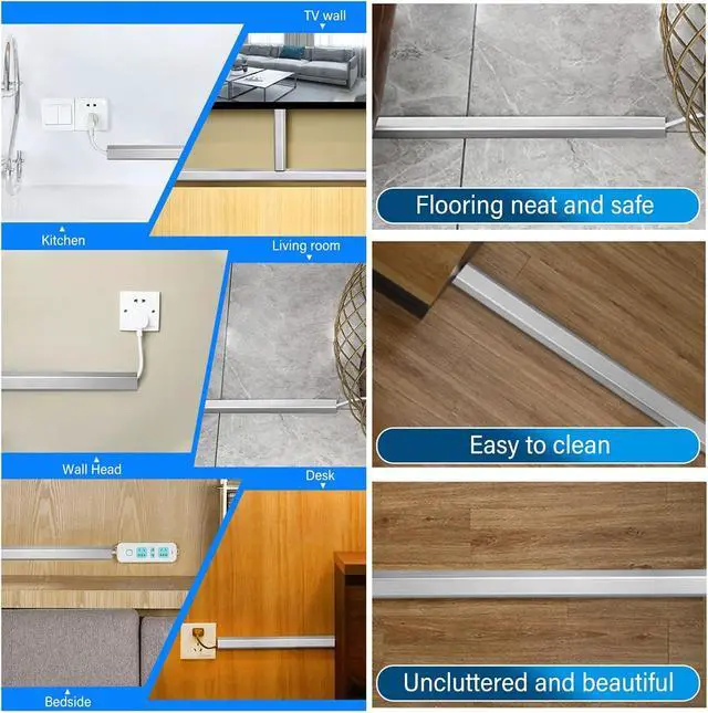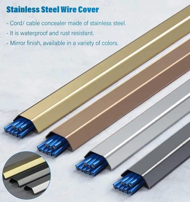 Stainless Steel Cable Raceway: The cord cover is made of sturdy metal stainless steel. The surface is shiny and very fashionable, waterproof, durable and scratch-resistant, it is a must-have for wall/floor hidden cords at home.