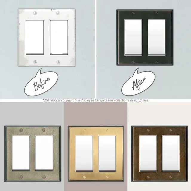 Various Configuration - The oil rubbed bronze wall cover plates are available in many configurations, including toggle, duplex, GFCI decora/decorator/rocker, cable, blank, and combination switch outlet.