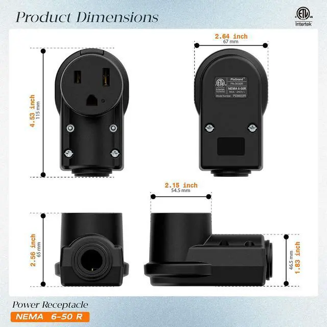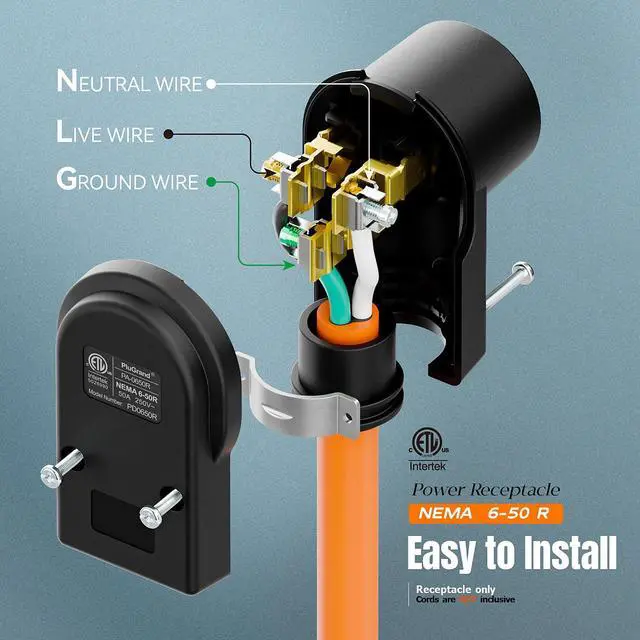 • NEMA 6-50R receptacle, 50AMP 250Vac for 6AWG Cord, 40AMP 250Vac for 8/7AWG Cord, 30AMP 250Vac for 10/9AWG cord, 25AMP 250Vac for 12AWG cord; It compatible with cord: (12-6AWG 3C SJT SJTW SJTR SJTW-R SJTO SJTOW SJTOOW ST STW STOW STOOW SJE SJEW SJEO SJEOW SJEOOW SJ SHJ SJO SJOO SJOW SJOOW ETC.