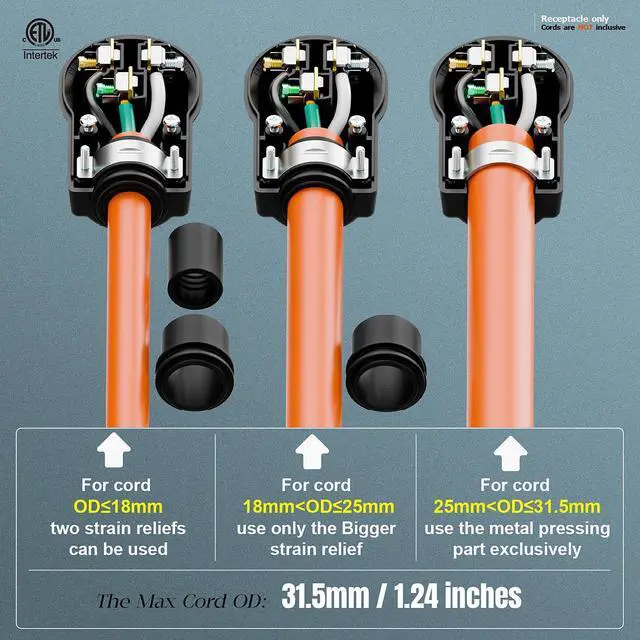 • [Support CORD OD MAX.31.5mm (1.24 Inches] The plug designed for cord SJT STJW STO SJTO SO ST SRD SVO Etc, 12AWG/10AWG 8AWG/6AWG 3 Conductors,