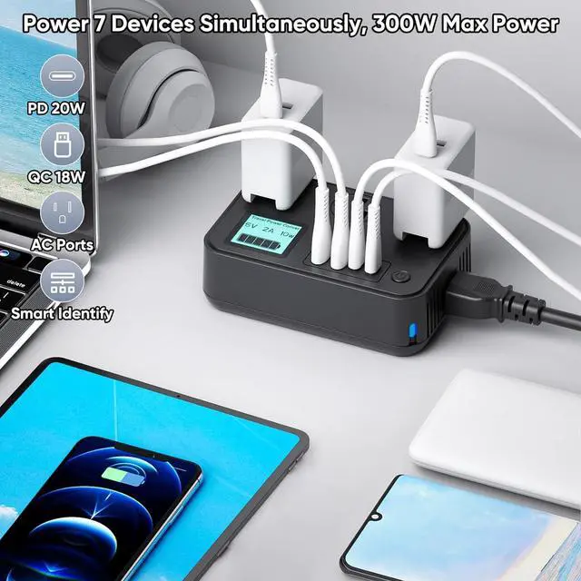 220 to 110 Voltage Converter w/ Smart and Quick Charge - With advanced design, our travel voltage converter equipped not only both USB and Type-C ports, it provides quick charge with PD 20W and QC 18W, plus with 3 AC ports, you can simultaneously charge up to 7 devices fast and safe