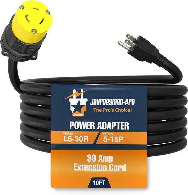 Pigtail 220V to 110V Outlet Adapter 2FT or 10FT for Plasma Cutters, Welders. Plug into Standard Household Outlet, 3 Prong Welding Extension Cord Converter from Journeyman-Pro (L630R-515P-10FT)