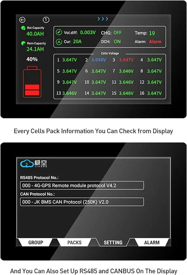 Easy Installation for Energy Storage Systems: Ideal for home energy storage, solar systems and inverter battery setups. Allows users to visually monitor BMS data without using a mobile app