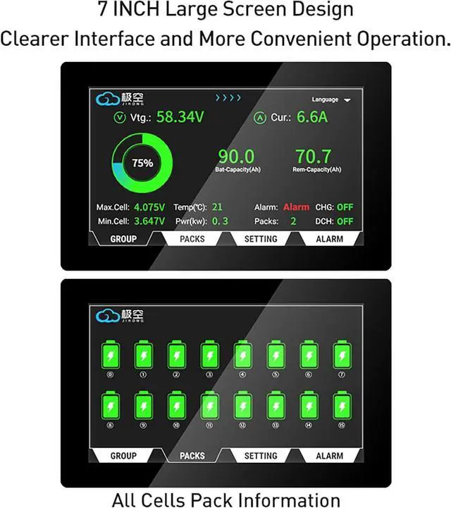 Real Time Battery Monitoring: Displays battery total voltage, battery power, single series voltagedisplay in real time for easy monitoring and system management