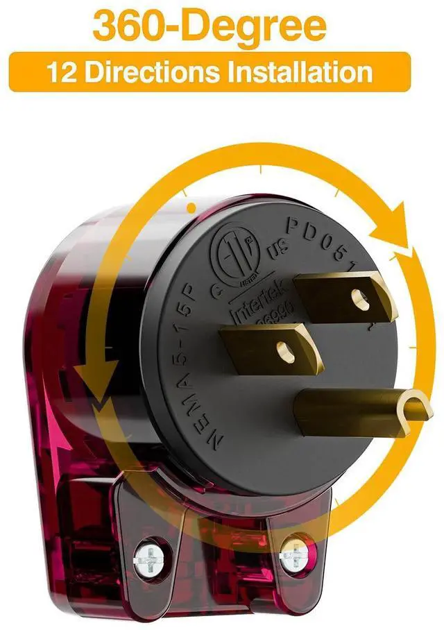 [ETL Certified & 10 PACK] Nema 5-15P 15AMP 125Volt Nema 5-15P male AC Power plug, Rewirable 15Amp household right angle power plug, Angled USA Canada 3Pole male AC plug, This Plug come with 12 directions adjustable, See picture of how to locate to the 12 directions