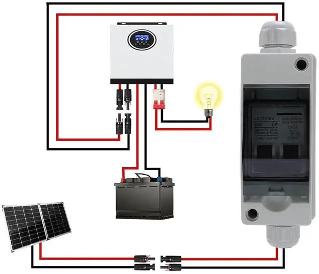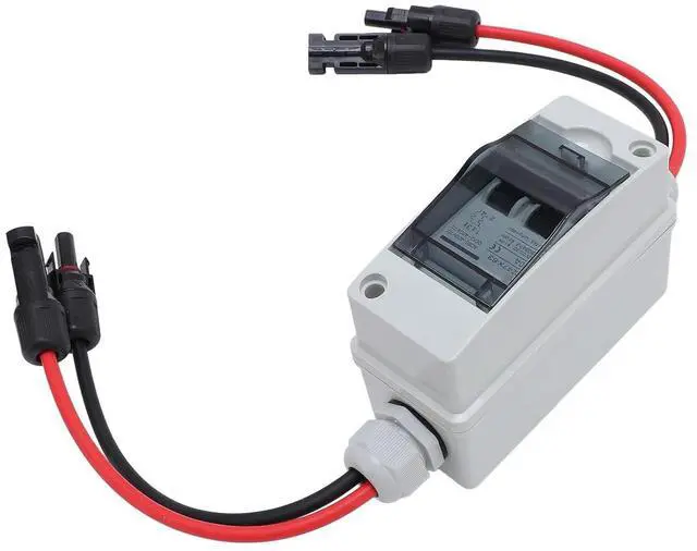 EASY TO INSTALL: Solar DC disconnect is installed between solar panel and solar inverter, can realize faster and safer installation, plug and play. PV disconnect switch is easy and convenient to assemble and disassemble, easily connected by two water proof connectors on the top and bottom, with pre drilled holes on the back and internal 35mm guide rails