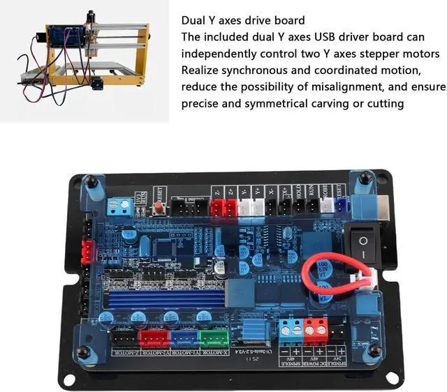 [ Y Axes Drive] Included Y axes USB drive board can independently control two Y axes stepper motors, this function enables synchronous and coordinated motion, reducing misalignment, ensuring precise symmetric carving or cutting.