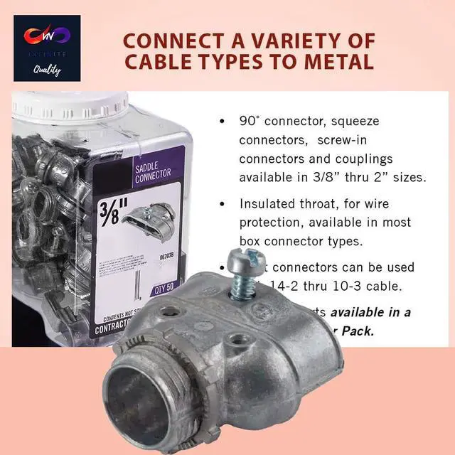Versatile Compatibility: Designed to fit a wide range of applications, this 3/8-inch connector is compatible with aluminum or steel 14/2 - 10/3 AC and MC cables, as well as 3/8-inch FMC/RWFMC, making it perfect for various residential and commercial electrical installations.