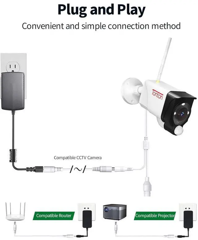 [Compatible with Various 12V Security Cameras] Works with Amcrest, Hiseeu, Foscam, Tonton, ZOSI, JOOAN, Annke, Reolink, Night Owl, Swann, Lorex, Decko, Arenti, Defender, and other camera brands, as well as DVRs/NVRs.