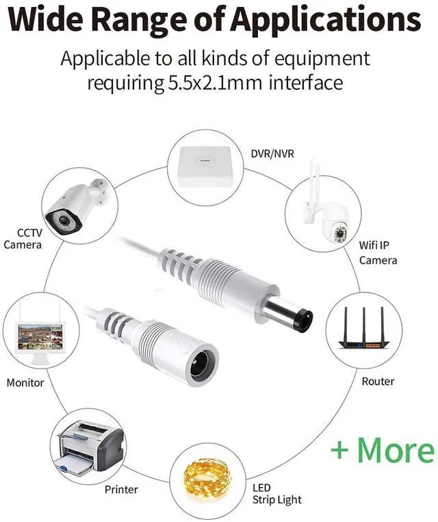 [WARM NOTICE] While 2.1mm x 5.5mm plugs are commonly used for 9v, 12v, and 24v power adapters, not all adapters employ this specific barrel plug size. Please verify plug size compatibility before making a purchase.