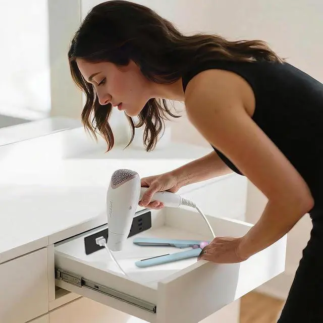 SPACE SAVING HIDDEN DESIGN: This unique furniture power outlet gets rid of hefty adapters and messy plugs. It is almost flush with the countertop, making your drawer and desk tidy and modern.