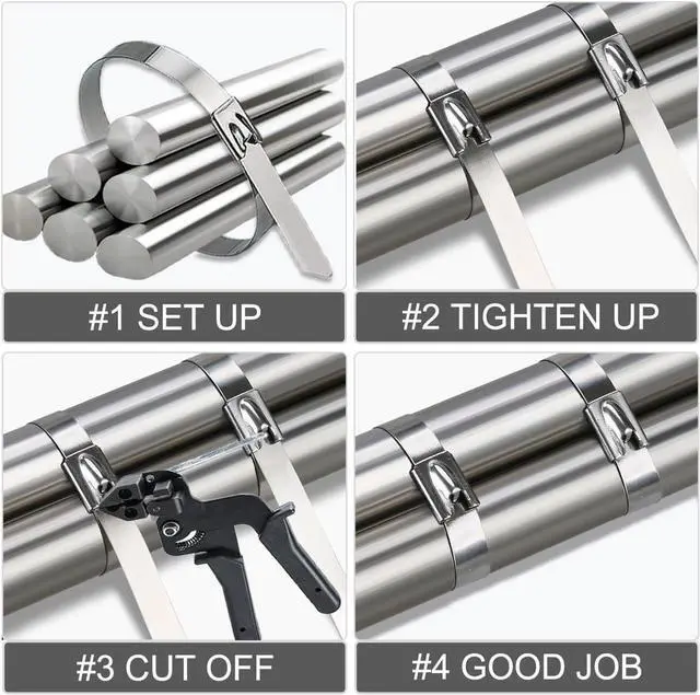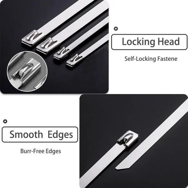 Easy to UseDesigned with an easy-to-install self-locking ball bearing head, these metal zip ties require no special tools. Simply use a pair of needle-nose pliers to tighten and cut with diagonal pliers or scissors.