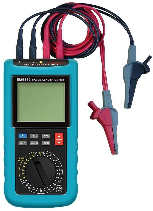 The cable length meter is built-in buzzer,back-light and 4 1/2-digit display,8 memory locations in user select mode. WIRE GAUGE(m) it only can measure copper or aluminum; UESER SELECT can measure the length of any metal wires,it can save the result of resistance.