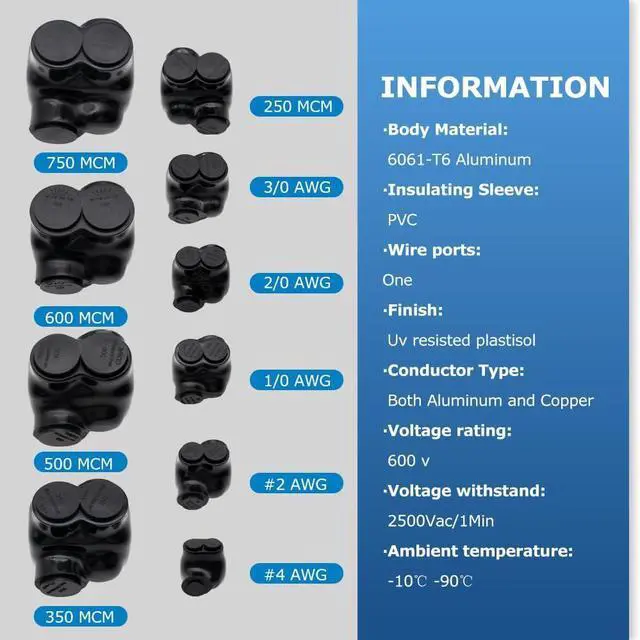 High-quality Materials:The main body of our insulated inline splice connector is made of 6061-T6 aluminum, ensuring durability. Pre-filled oxide inhibitors can effectively extend the service life of electrical connector kits. It adopts PVC insulation to provide excellent protection. UL certification ensures the reliability and safety of the product.