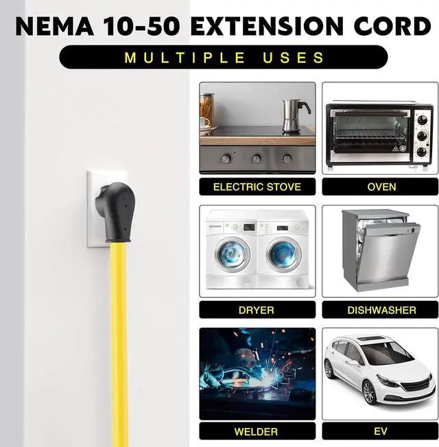 Simplify Your Life: our 50 amp 10-50 extension cord is ideal for dryer electric range oven stove or EV charger and more, providing you with heavy duty and easy to use products; With our solution, you'll always stay connected