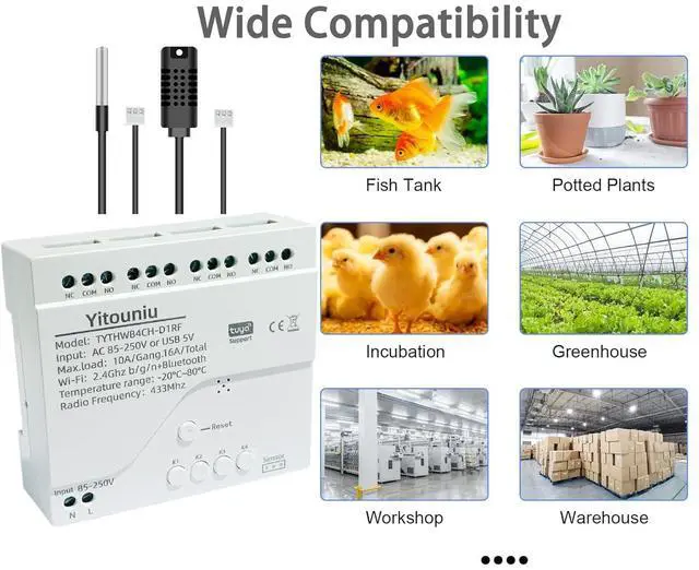 Efficient and intelligent control: Yitouniu wifi temperature and humidity controller remotely controls temperature and humidity Settings through Tuya smart life app and voice assistant (Alexa, Google Home), easily realizing automatic adjustment.