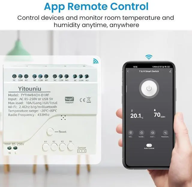 Multi-function temperature and humidity control: new 4-channel design, input voltage is DC85-250V, can remotely control 4 devices independently, operate the switch of household appliances.