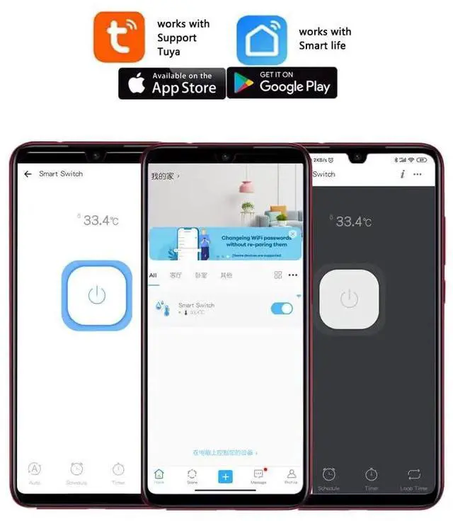 Timing function: Supports the creation of single, repeat, cycle and countdown timers, and automatically performs device switching operations at a specified time. The timer works even if the network is not available.