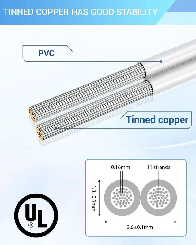 HIGH CONDUCTIVITY: 24 gauge garage wire made of 11 strands high-purity oxygen-free tinned copper, per cable 0.16 mm, 80 high temperature resistance, with excellent electrical conductivity, low resistance and ultra-low eccentricity