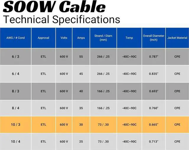 Applications: portable power, electric vehicle chargers, extension cords, heavy equipment, construction machinery, motor cables, welding cables, portable lighting, battery chargers, shallow water immersion, mining environments, and applications where a tough and sturdy flexible multiconductor cable is required.