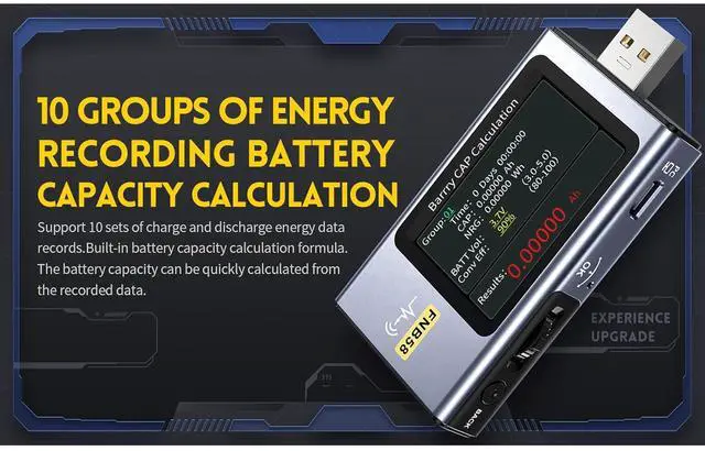 Multifunctional: This USB digital multimeter is multifunctional, supports 10 groups, discharge energy data recording, and has a built in battery capacity calculation formula, which allows you to quickly calculate the battery capacity through the recorded data.