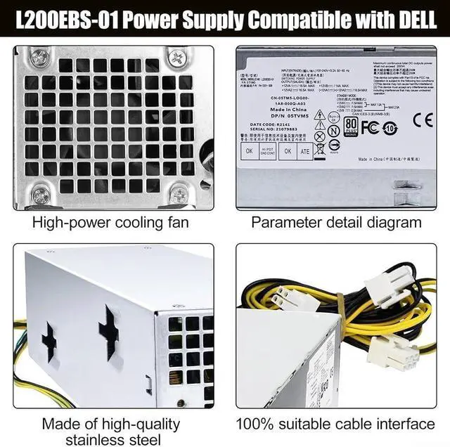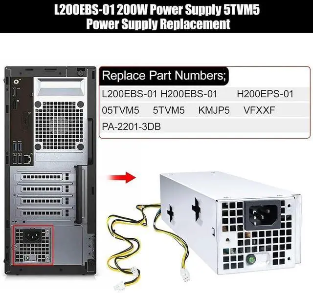 What You Get: 1 x L200EBS-01 (5TVM5) 200W Power Supply; Packed for quick replacement. Check your system model to confirm compatibility before installation.