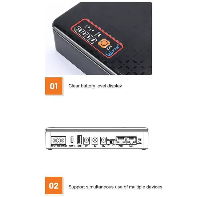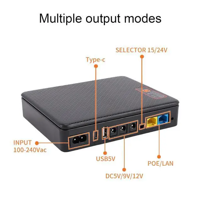 Versatile Compatibility: No separate power adapter is required, supporting a wide range of AC voltage input. This UPS battery backup supports multiple output options including USB, Type C, multi voltage DC, and POE, compatible with a wide range of devices