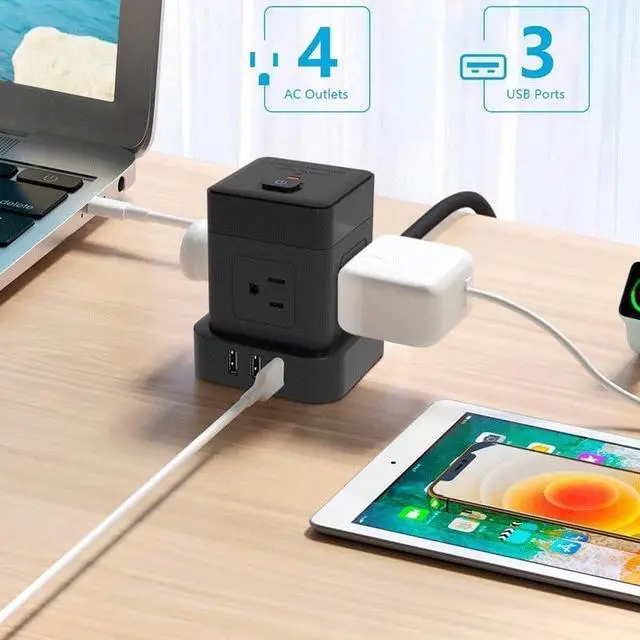 1.No Blocking Design- 4-Side cube design allows you to power 7 devices simultaneously in all directions and fully utilize the outlets and - Making it easier to use for all kinds of equipment and without blocking each other, especially for plugging in large adapters.