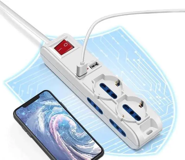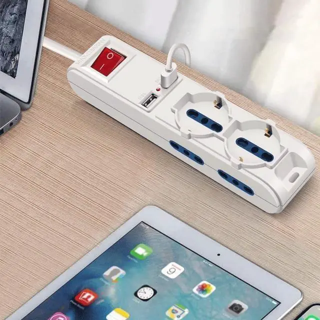 All in i 6 sockets + 2USB include 2 multiple sockets and 4 Italian sockets for 10 / 16A plug, which can charge the 6 devices at the same time.