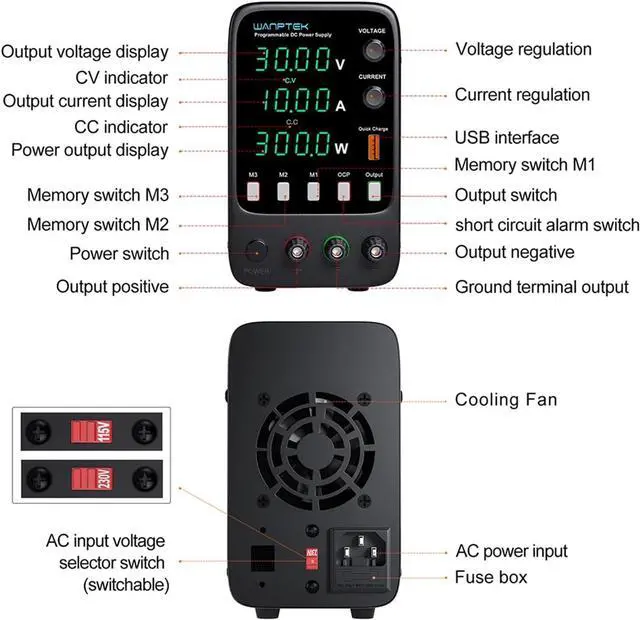 DC Power Supply 30V 10A Lab Programmable Memory Function Adjustable Bench Power Source Voltage Regulator Switch 60V 5A(0-120V 0-3A)