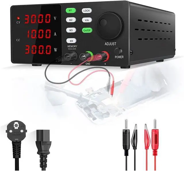 Regulated Power Supply, 4Digits Precision Laboratory DC Power Supply 30V 10A LAB Digital Programmable Switch Voltage Regulator Stabilizer Switch Source Reliability and Safety (Color : NQ22-SPPS-S3010