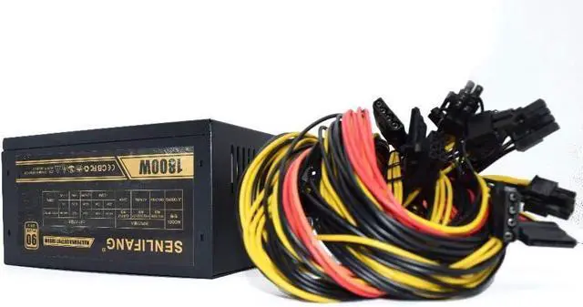 6 GPU Miner Case 1800W Ethereum Miner Power Supply for Bitcoin Miners Support 6 Graphics Card New 6 SATA Interface Mining Power
