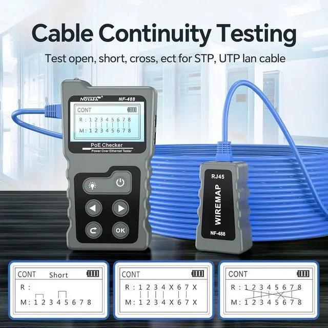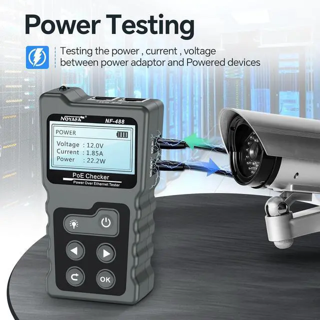NOYAFA PoE Tester Inline Tester for Power Over Ethernet, Network Cable Continuity Checking, DC Power & Switch Loop-Back Test PoE Detector