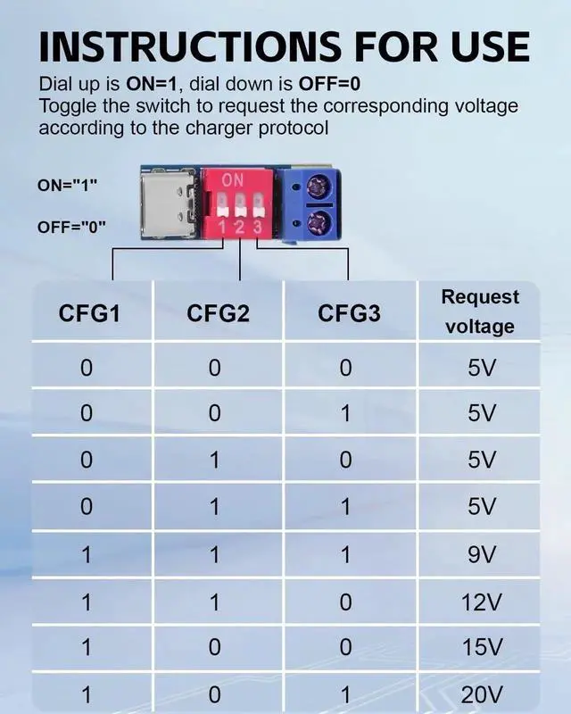 USB-C PD Trigger Board Module PD/QC Decoy Board Fast Charge USB Type-c to 5V9V12V20V High Speed Charger Power Delivery Boost Module with Screw Terminal