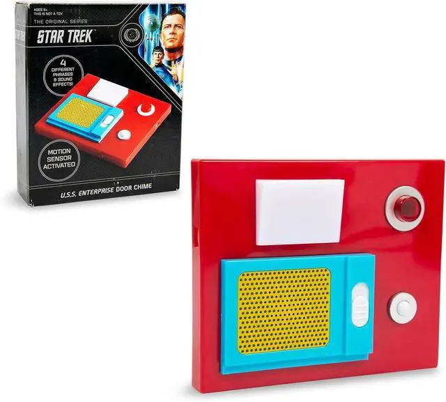 THE FUTURE IS HERE. One frequent topic of conversation at lunch with fellow geeks is how awesome it would be to have 23rd century gadgets in our 21st-century world. We watch our Trek, and we drool over the gadgets and gizmos and wish we could have them. ..and then, our wish came true. Several cases of the wall communicator panels from The Original Series appeared in our warehouse. Mount one on the wall by your door and when someone crosses your threshold, it will alert you. Choose between the door opening sound effect or the Red Alert alarm. Whether it's a bloodthirsty Klingon bent on revenge or just your boss looking for your TPS report, you'll know the moment they appear.