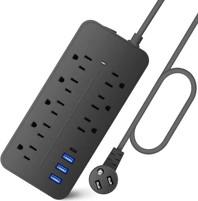 12 in 1 Multi-Outlet Power StripSurge Protector Power Strip Multi-Plug Outlet with 8 Grounded AC Outlets 4 USB Charging Ports (1 USB C Outlet), No need for multiple chargers, save you money and desktop Space. Can power up to 12 devices at the same time.
