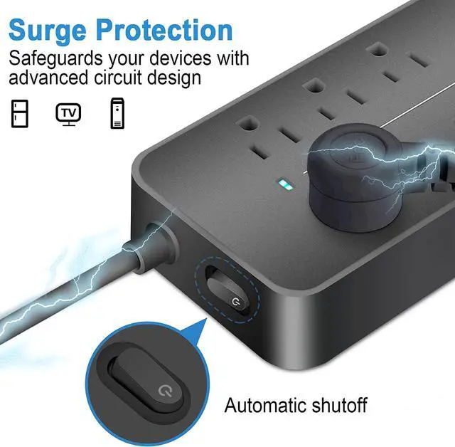 Overload ProtectionSurge protector power strip with usb, socket extender with built-in multiple safety modules can protect your electronic devices from overload and short circuit. Reliable overload switches will automatically trip when power is overloaded to protect your equipment and your home.