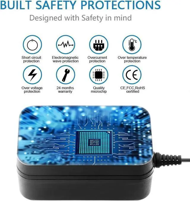 Built-in multiple safety protection systems. Automatic over voltage cut-off, over current cut-off, over temperature cut-off, short circuit cut-off. We focus on producing premium quality and safety power adapters. No noise, no spontaneous combustion, no explosion, no fire hazard, safe to use. 6ft long power cable makes it convenient to use.