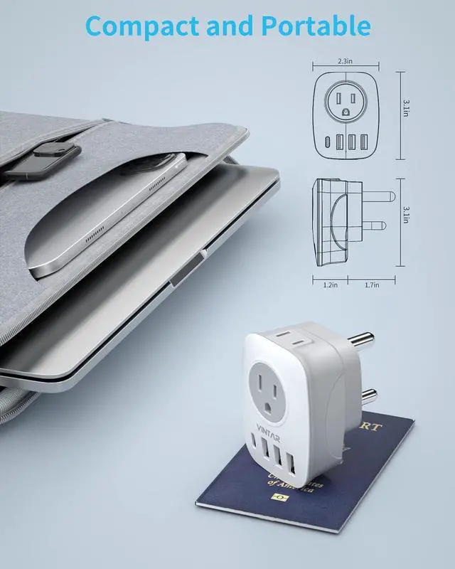 ULTRA LIGHT and COMPACT DESIGN-- This international power adapter is mini size: 3.1 * 2.6 * 2.4 in, weight 85g. It will be a great travel companion during world trips and cruise trip, easy to use. Enjoy your travel time. Led indicator can let you know the power is on/off.